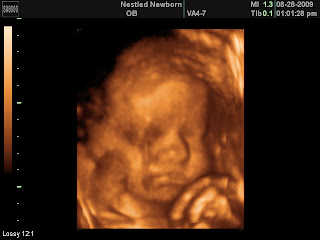 We had a 3-D ultrasound and Ellie was a little stubborn. I think she may get this trait from her Daddy! She had her hands in her face most of the time, but we were able to get a few pictures. The ultrasound tech reconfirmed she was a girl (thank goodness), that she has some hair, and some chubby cheeks! She told us that in the last few weeks, she had two couples come in thinking they were having a girl and it was definitely a boy! They were both 30 weeks. We can't wait to meet this little miracle in less than 11 weeks!