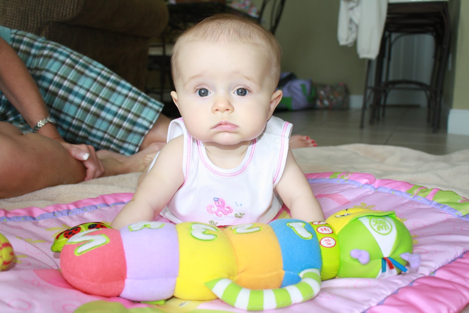 I think we've come to the conclusion that sleep is just not something we are going to agree on... She has been a few times ALL DAY without a nap. On those days she doesn't get fussy, but I do! I am begging her to rub her eyes so I can nap! She has been consistently sleeping about 7 - 8 hours a night... I am so jealous of other moms out there when I hear that their babies are sleeping 12+ hours a night! She HATES going to sleep, but we are getting better on going down at night.